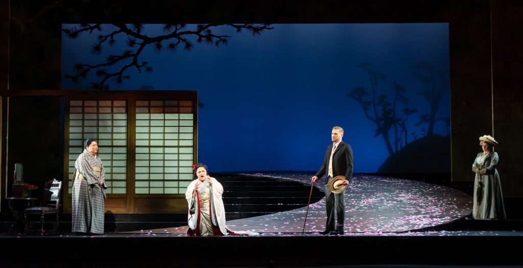 Driscoll Otto’s masterful lighting design provided layered textures that enhanced the characters’ shifting emotional states. In the transitional “interlude” between Acts II and III, for instance (the “Humming Chorus,” sung by a choir expertly trained by Piotr Wiśniewski), we could almost feel the hope drain out of Butterfly, as bluish night progressed to golden daylight.