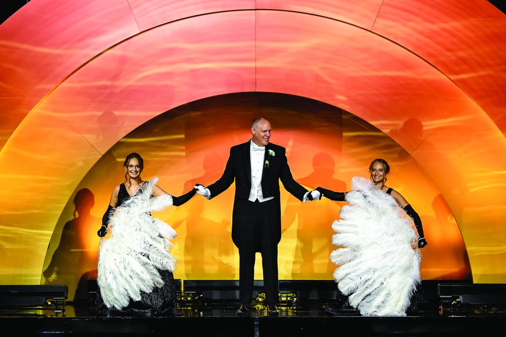 The 76th Anniversary BOTAR Ball was held on October 18th at the Muehlebach Tower of the Kansas City Marriott Downtown. Mrs. Matthew Julian Knopke (Mary Ann Guastello Knopke) served as the 2025 BOTAR president, and she and the committee orchestrated a beautiful tribute to the roaring ‘20s with a dramatic black and white and gold flair. The traditional waltz performed by the BOTARs (with white ostrich fans) and Escorts was highlighted by a delightful Charleston dance interlude. Proceeds benefit the mission of the American Royal.