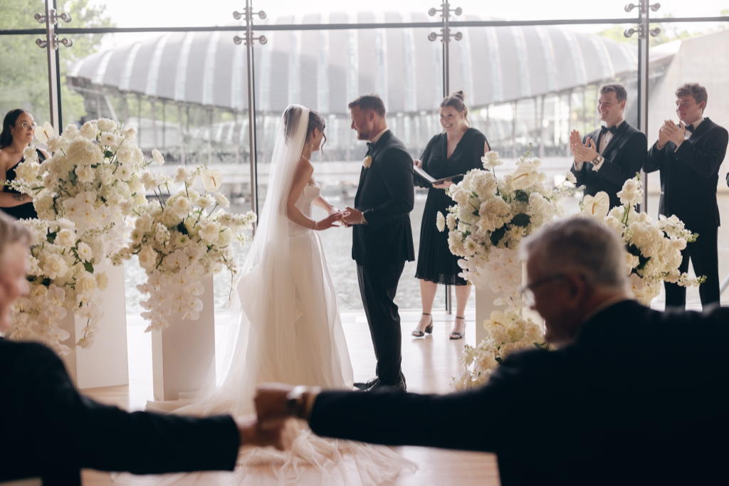 The newly married couple were surrounded by the gorgeous artwork.